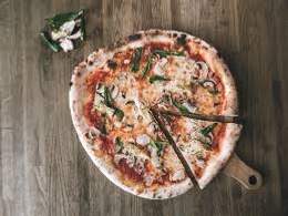 Sauce tomate, mozzarella, jambon de dinde fumé, champignons frais