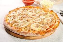 Sauce tomate, mozzarella, thon, oignon, olives, piment de Cayenne