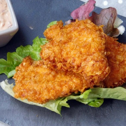 Riz ou tastira ou pâtes sauce rouge ou ojja, harissa, mayonnaise, salade tunisienne, frite, poulet pané