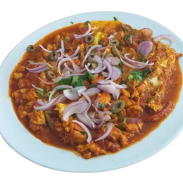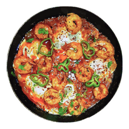 Sauce tomate, tomate, piment, oignon, gousses d'ails, persil, œuf, crevettes