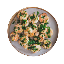 Riz ou tastira ou pâtes sauce rouge ou ojja, harissa, mayonnaise, salade tunisienne, frite, crevettes sautées