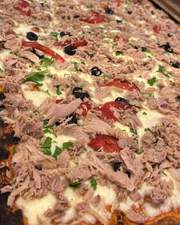 Thon, sauce tomate,olive, mozzarella(dimension : 15/20cm)