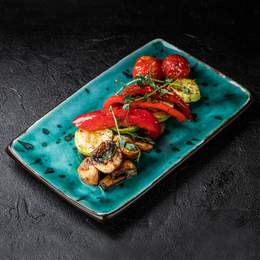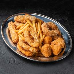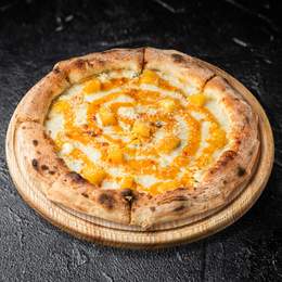 Сир Дор Блю, сир Чеддер, сир Пармезан, сир Моцарела, манго, вершковий соус, соус манго-чилі