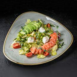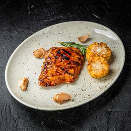 Філе куряче sous-vide, грудинка копчена, помідори чері, салат Айсберг, сир Пармезан та соус Цезар