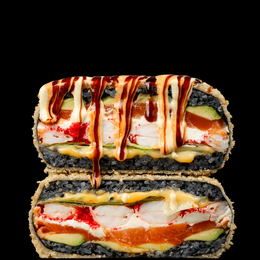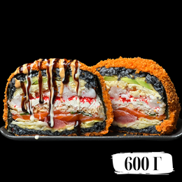 Норі,рис,сир філадельфія,сир чедер,мікс сирів,лосось,тунец,креветка тигрова,сніговий краб,ікра,авокадо,капуста айсберг,соус спайсі,сирний соус,унагі соус,чорнило каракатиці 600 грам