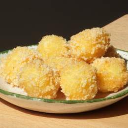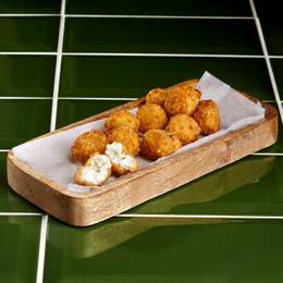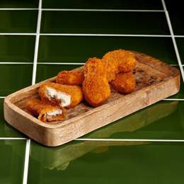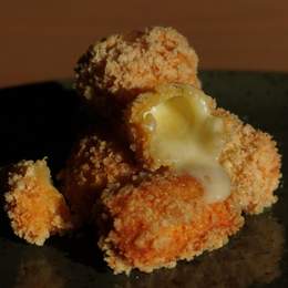 Трошки солонуватий сир з пружньою текстурою.Тонка скоринка кляру зберігає аромат та підкреслює смак