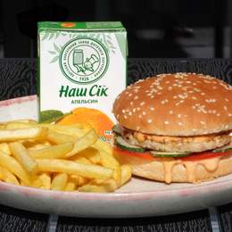 Все те що ви так любите у нашому Фірмовому бургері, але тепер з курячою котлетою - сир, велика кількість свіжих овочів та наш секретний фірмовий соус