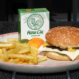 Наш хітовий чізбургер тепер Подвійний.Все як ви звикли, але тепер вдвічі більше м'яса