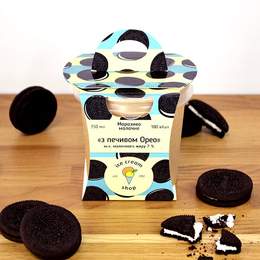 Молоко коров'яче 3,2%,цукор білий кристалічний, вершки з коров'ячого молока 33%, сухе знежирене молоко 0,8%, печиво ТМ OREO, масло солодковершкове 73%, декстроза, глюкозний сироп, какао-порошок алкалізований, ванільний цукор, стабілізатор-емульгатор