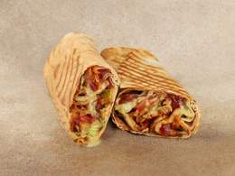 Склад: Лаваш-піта, салат айсберг, помідор, маринований огірок, м'ясо на вибір, фірмовий часниковий та томатний соус
