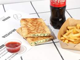 Склад: Лаваш-піта, сир сулугуні та зеленьДо комбо входить картопля фрі , напій та соус