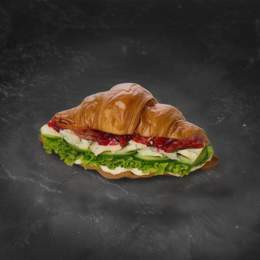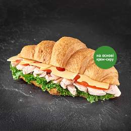 Круасан, соус "Цезар" на основі Крем-сиру, салат Айсберг, куряче філе, помідор, сир Пармезан. Можлива заміна виду салату в зв'язку з перебоями постачання