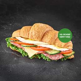 круасан, помідор, огірок, салямі, сир тостовий, яєчня, салат, соус Цезар