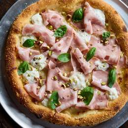Багато мортадели та страчателли власного виробництва, у поєднанні з сирним соусом, крашем фісташок та базиліком + соус до бортів *Містить алергени: глютен, молоковмісні продукти, фісташка.