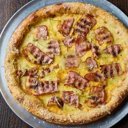 Підкопчений бекон у сирному соусі з зеленою цибулею і пармезаном, + соус до бортів. Все, як вчила бабця! *Містить алергени: глютен, молоковмісні продукти.
