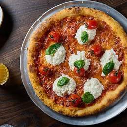 Страчателла власного виробництва, з cоковитими квашеними чері на томатному соусі, з моцарелою, пармезановим крашем та свіжим базиліком + соус до бортів *Містить алергени: борошно пшеничне, молоковмісні продукти.