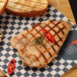Тости гриль з куркою, томат свіжий , салат Айзберг, соус Цезар, сир пармезан.