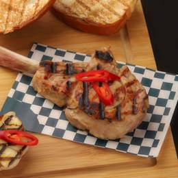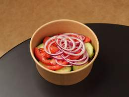 Яєшня смажена з ковбаскою гриль, овочевий салатик та грильований хліб.