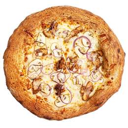 соус часниковий, моцарела, куряче стегно, печериці, синя цибуля (Страви готуються за фіксованими рецептурами - побажання щодо складу не виконуються)