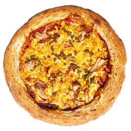 соус BBQ, моцарела, сир гауда, куряче стегно, халапеньйо, кукурудза (Страви готуються за фіксованими рецептурами - побажання щодо складу не виконуються)