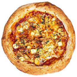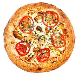 томатний соус, моцарела, куряче стегно, сир горгонзола, зелень (Страви готуються за фіксованими рецептурами - побажання щодо складу не виконуються)