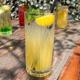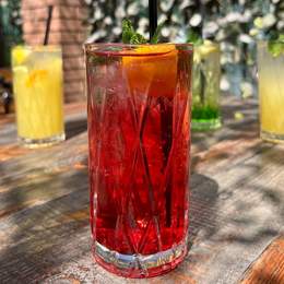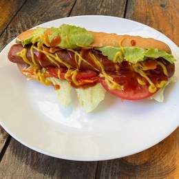 Соковитий бургер з яловичиною, сиром, помідором, солоним огірком, маринованою червоною цибулею та хрустким айсбергом. Подається з картоплею фрі