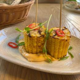 Соковите куряче філе, мариноване в спеціях, обсмажене на грилі до апетитної скоринки. Подається з мексиканською овочевою сумішшю, картоплею конфі та ароматним соусом песто