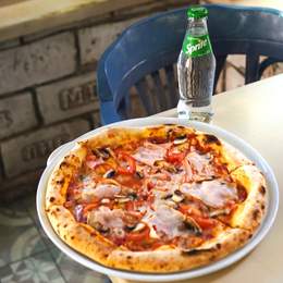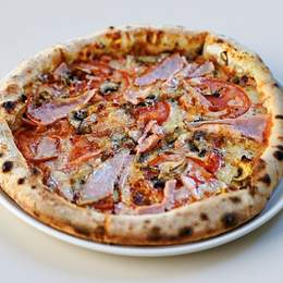 Неаполітанська піца, яка складається з тонкого, хрумкого на скоринці тіста, фірмового соусу, а також моцарели, помідору, шинки, балику та грибів