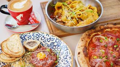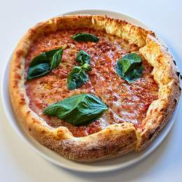 Неаполітанська піца, яка складається з тонкого, хрумкого на скоринці тіста, фірмового соусу, а також асорті сирів та базиліку