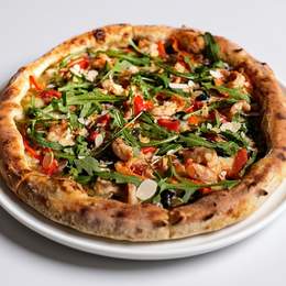 Неаполітанська піца, яка складається з тонкого, хрумкого на скоринці тіста, фірмового соусу, а також моцарели, креветок, мідій, кальмарів,маслин, запеченого перцю та мигдалевих пластівців з додаванням руколи