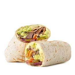 280 г Соковита грильована яловичина Halal від бренду "Skott Smeat", свіжі овочі, хрумкі мариновані огірочки з фірмовим авторським соусом у тортильї.