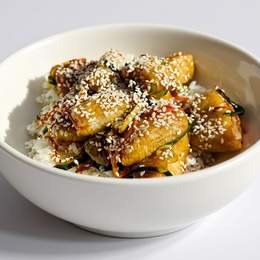 Маринований тофу з каррі, фучжу в солодкому соусі чилі