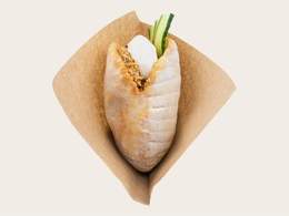 Близький родич шаурми. В коржик загортають шварму із курки, мікс салату (петрушка, кінза, томат, цибуля марс), солоний огірок, часниковий соус і томатний соус власного приготування. Подаємо з картопелькою фрі та сирним соусом