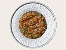 Запікаємо баклажани, томати, кабачки, болгарський перець та цибулю марс. Заправляємо лимонним фрешем, оливковою та домашньою олією, часником і свіжим базиліком. Подаємо, поливши оливковою олією.