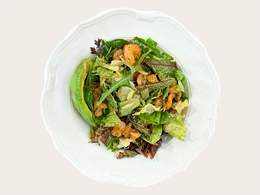 Мікс салату поєднався зі стиглим авокадо обсмаженим на грилі, креветками, соусом вінегрет, що майже на грані фантастики