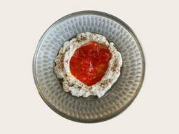Близькосхідний мʼякий сир лабне із додаванням спецій і томатного джему власного виробництва з фермерських томатів.