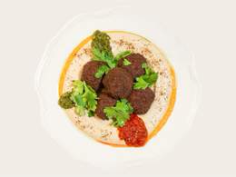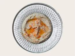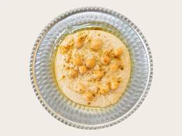 Закуска з попередньо відвареного нуту, сирої тхіни, лимонного фрешу, часнику, зіри і рослинного масла. Це все перебивається до однорідної, ніжною маси.