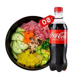 Рис, тунець, ікра масаго, сир філадельфія, огірок, норі, сир моцарела, японський майонез, соус шрірача чилі, соус унагі