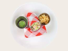 Kidsy Brooksy Box з бургеромБургер (молочна булочка, яловича котлета, сир чедер, біла цибуля, огірок маринований, кетчуп, гірчиця), картопля фрі, кетчуп, напій на вибір.А ще іграшка з колекції FLOCKIES від Kiddisvit. Це колекція із 19 дивовижних звірят, де кожен має власне імʼя та свою історію.