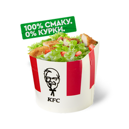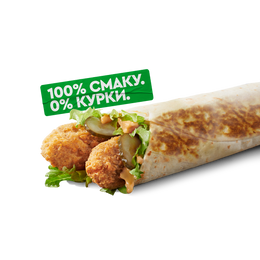 Вегетаріанська страва. До складу входять інгредієнти з молока та яєць. Свіжий салат айсберг, хрумкі огірочки, два веджі-стріпси та соус у тортильї.