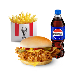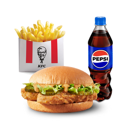Вегетаріанська страва. До складу входять інгредієнти з молока та яєць. Веджі Бургер + Картопля Фрі Стандартна + ПЕПСІ/ПЕПСІ НУЛЬ ЦУКРУ/ МІРІНДА/ СЕВЕН АП Refill