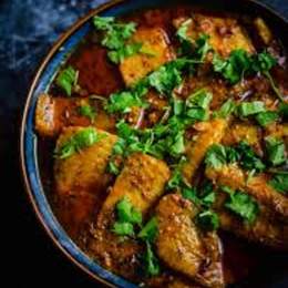 Fish (tilapia) simmered in its own sauce flavoured with a home made recipe of freshly ground spices.