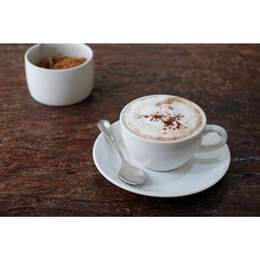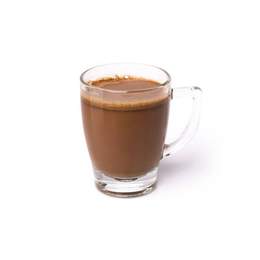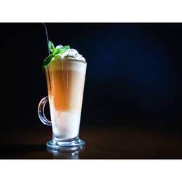 A coffee drink made with espresso and steamed milk in a creamy mix