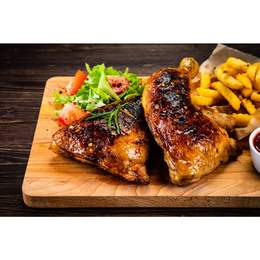 Grilled chicken on the bone cooked to perfection served with chips, rice or mashed potatoes