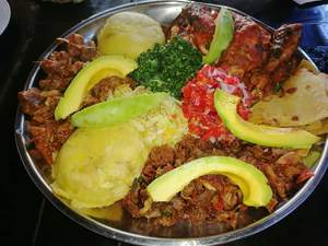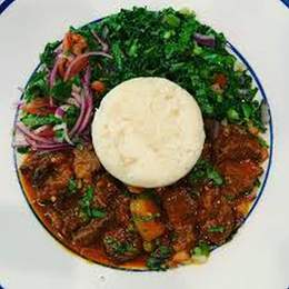 1/2 Wet fry goat served with Posho, sukumawiki and sukumawiki