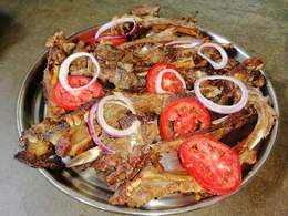 1 kilogram of well seasoned goat meat fried to perfection