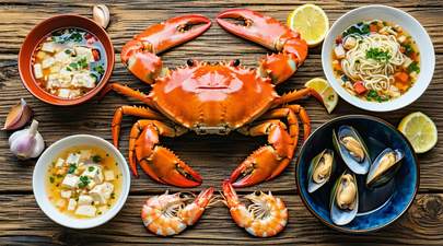 4 prawns,1 crab, 1 lobster tail, little mussels