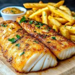 Well Spiced Breaded Fish Fillet, Deep Fried And Served With Fries