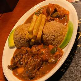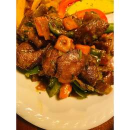 Goat Ribs Tossed In Bbq Sauce And Sauteed In Bell Peppers