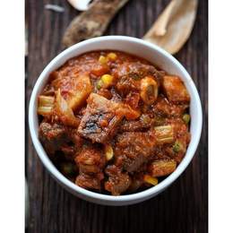 A traditional Ugandan breakfast dish made by cooking bananas with meat, offals, or beans